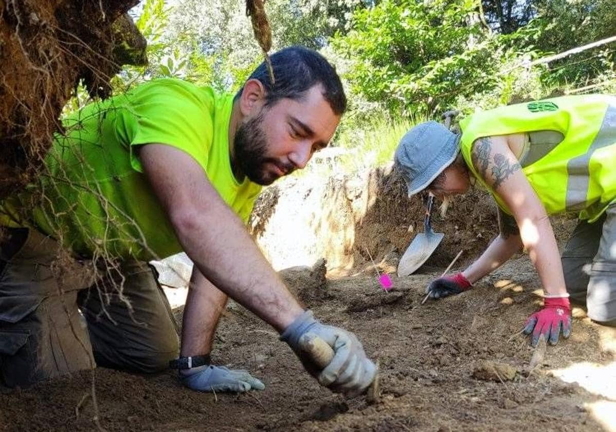 El coordinador del proyecto, Alejandro González, explicó a este periódico que lo primero que localizaron en una de las zanjas de los sondeos durante la jornada del martes, 30 de julio, fue la suela de un zapato, a través de la cual «conseguimos delimitar la zona, la fosa, que es lo que hemos estado haciendo a lo largo de la mañana».