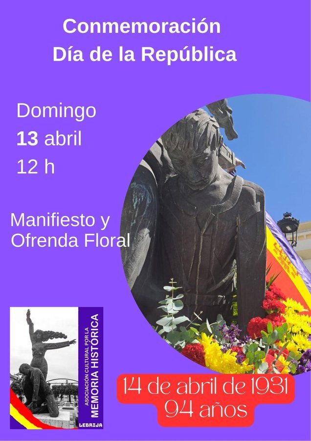 Conmemoración Día de la República. Lebrija (Sevilla) Cuándo 13 de abril de 2025 12:00 - 14:00 Añadir al calendario Descargar ICS Google Calendar iCalendar Office 365 Outlook Live Dónde . Plaza Juan Díaz de Solís, Lebrija (Sevilla) Compartir: