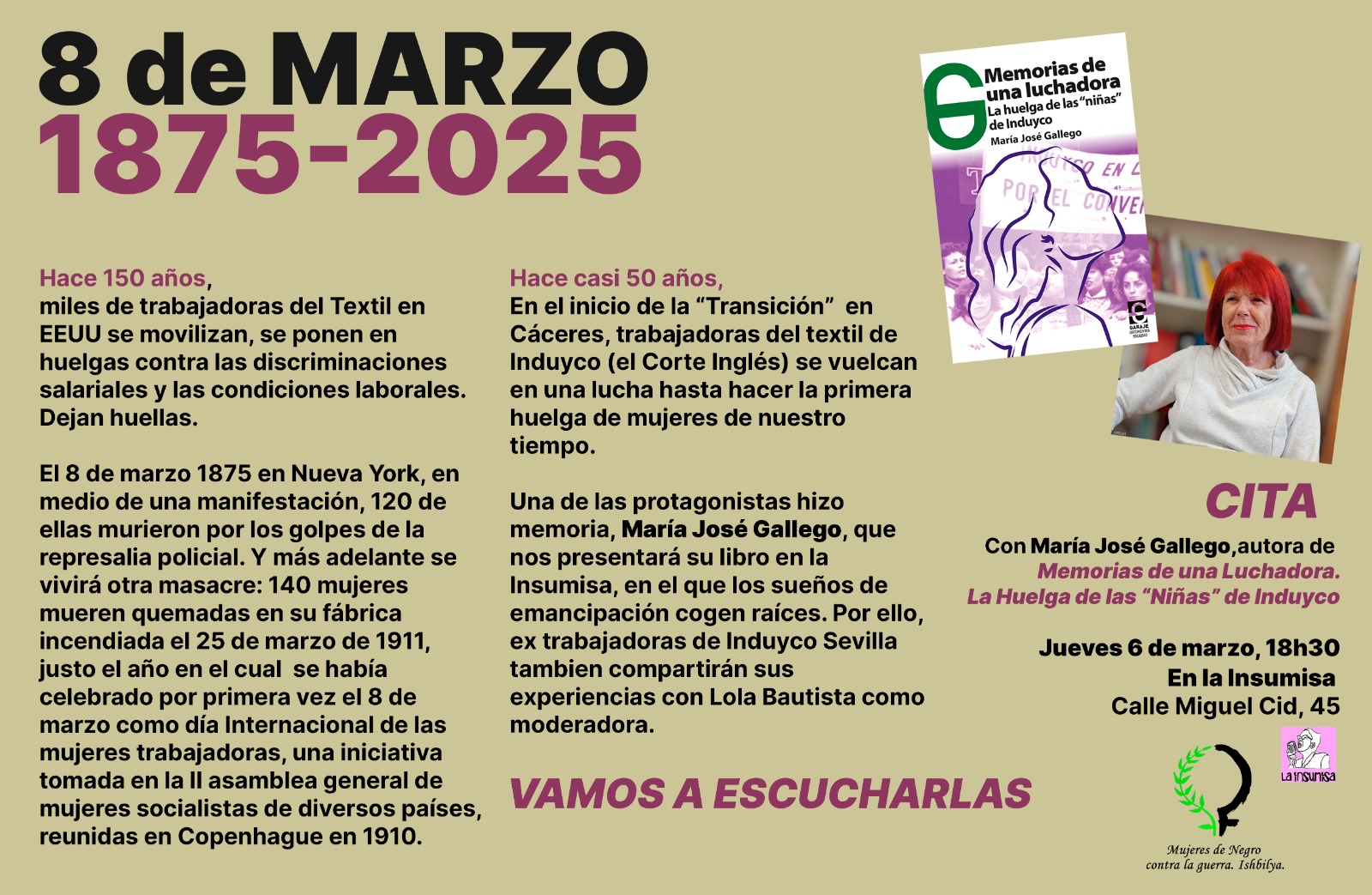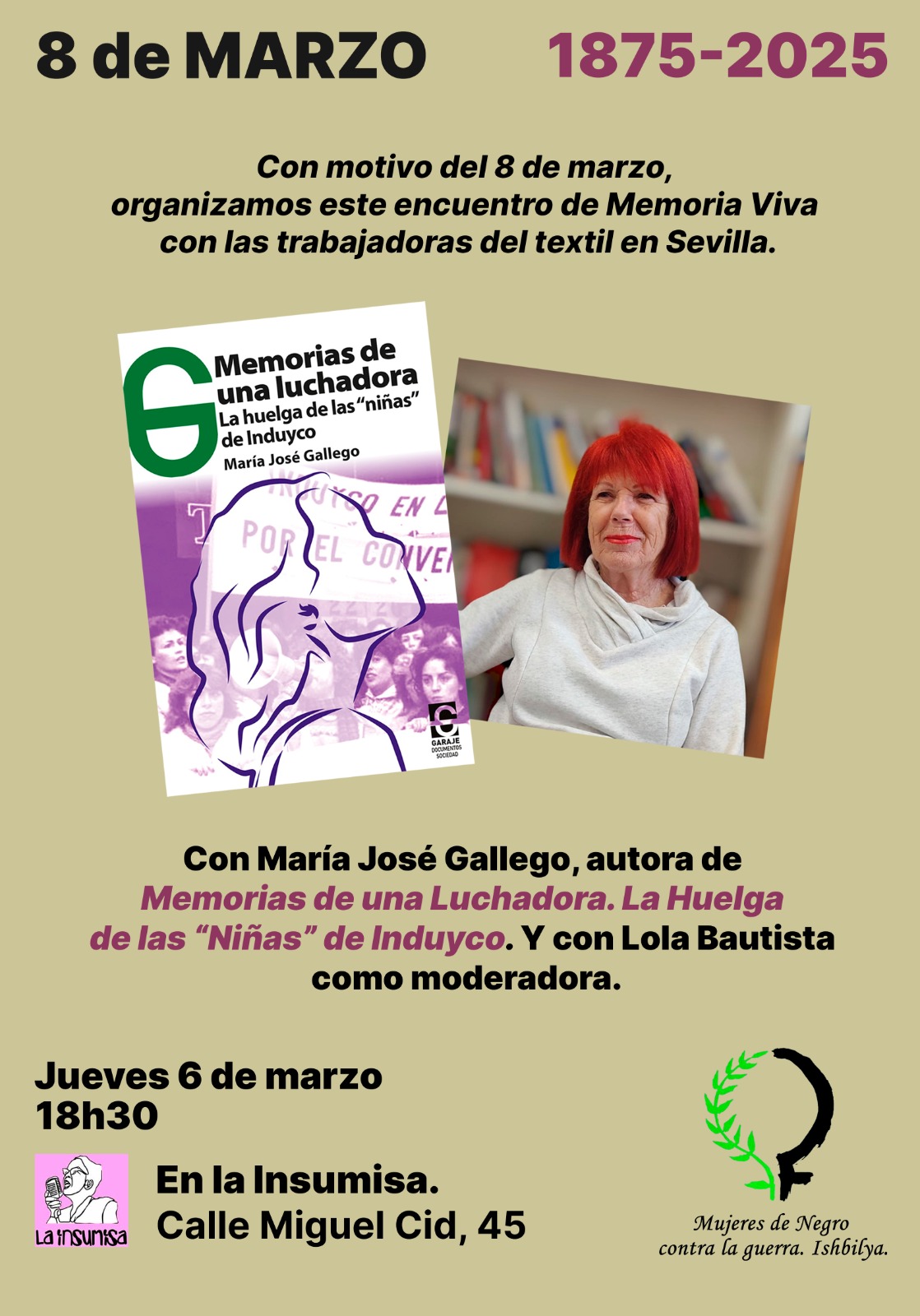 Encuentro de Memoria Viva con las trabajadoras del textil de Sevilla Cuándo 6 de marzo de 2025 18:30 - 20:30 Añadir al calendario Descargar ICS Google Calendar iCalendar Office 365 Outlook Live Dónde La Insumisa C/ MIguel Cid, 45, Sevilla Compartir: