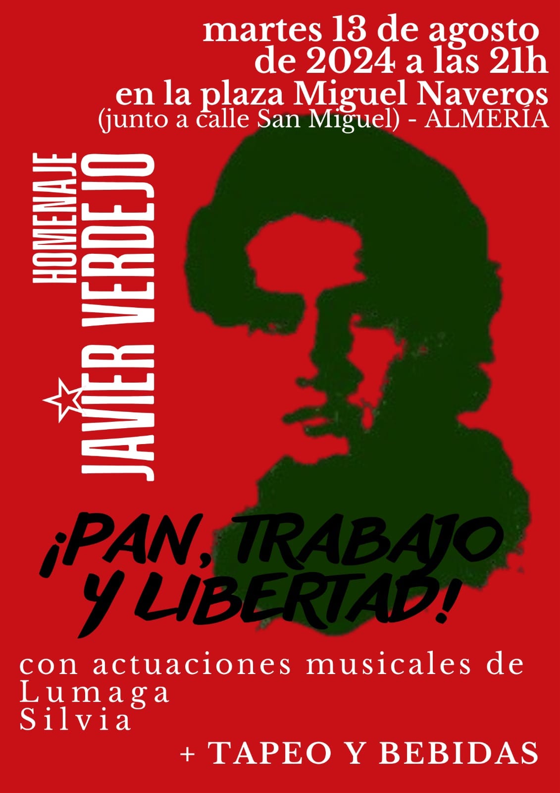 Homenaje a Javier Verdejo Cuándo 13 de agosto de 2024 21:00 - 23:00 Añadir al calendario Descargar ICS Google Calendar iCalendar Office 365 Outlook Live Dónde Plaza Miguel Naveros (junto a calle San Miguel) , Almería Compartir: