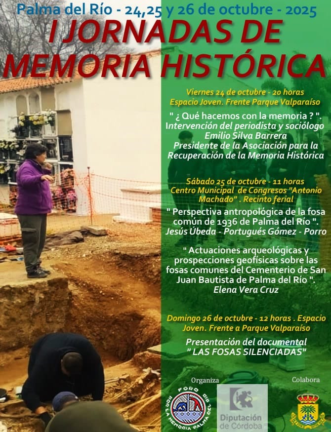 I Jornadas de Memoria Histórica. Palma del Río (Córdoba) Cuándo 24 de octubre de 2025 - 26 de octubre de 2025 00:00 Añadir al calendario Descargar ICS Google Calendar iCalendar Office 365 Outlook Live Compartir: