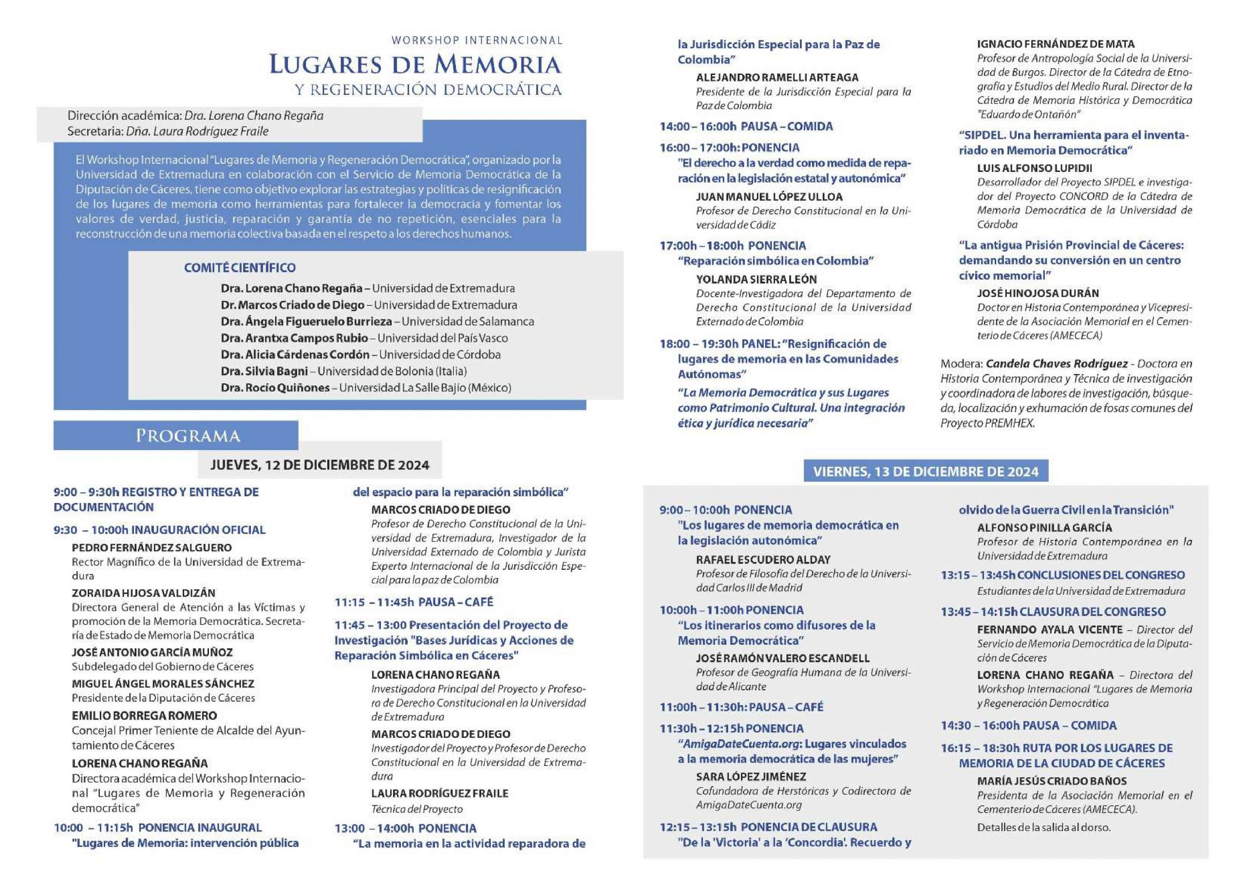 Jornadas “Lugares de Memoria y regeneración democrática”. Cáceres Cuándo 13 de diciembre de 2024 Todo el día Añadir al calendario Descargar ICS Google Calendar iCalendar Office 365 Outlook Live Dónde Sala Malinche Complejo Cultural San Francisco, Cáceres 29. Lugares de la Memoria y Regeneracion Democrática Compartir: