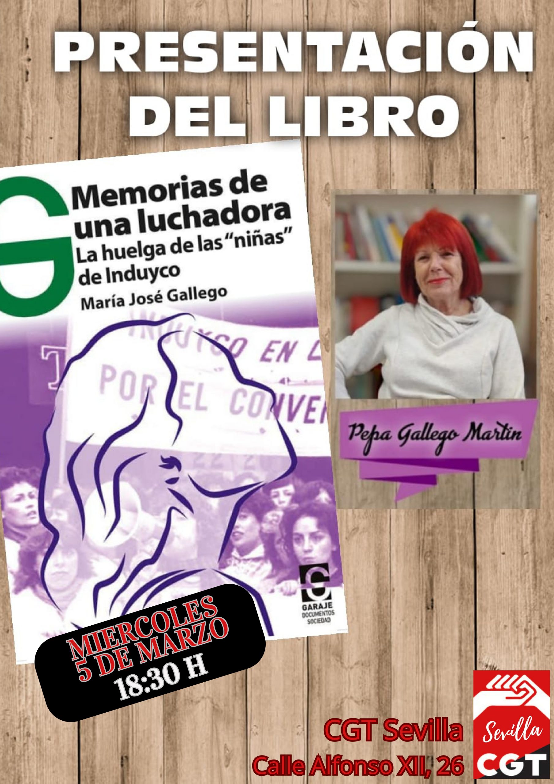 Presentación del libro: Memoria de una luchadora. La huelga de las “niñas” de Induyco Cuándo 5 de marzo de 2025 18:30 - 20:30 Añadir al calendario Descargar ICS Google Calendar iCalendar Office 365 Outlook Live Dónde Sede CGT Sevilla Calle Alfonso XII, 26, Sevilla Compartir: