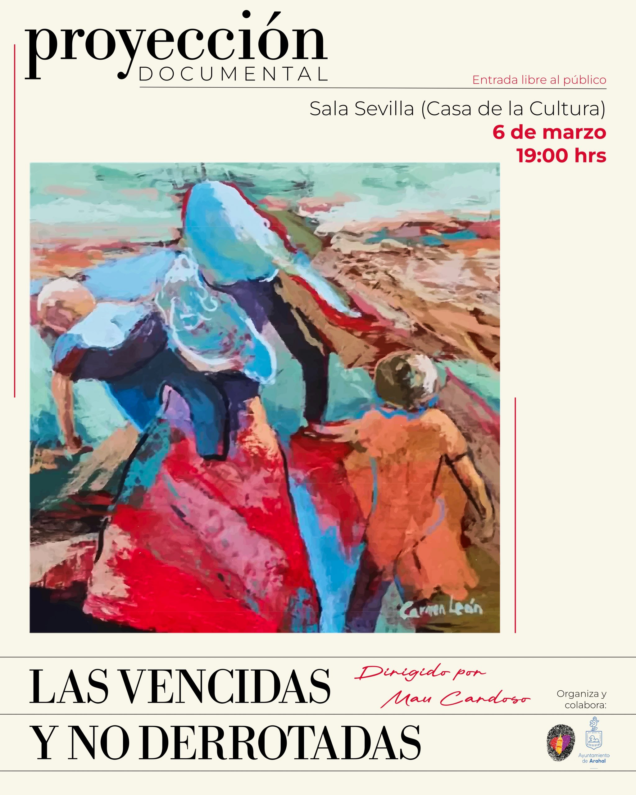 Proyección del documental: las vencidas y no derrotadas. Mau Cardoso Cuándo 6 de marzo de 2025 19:00 - 21:00 Añadir al calendario Descargar ICS Google Calendar iCalendar Office 365 Outlook Live Dónde Sala Sevilla (Casa de la Cultura) , Arahal (Sevilla) Compartir: