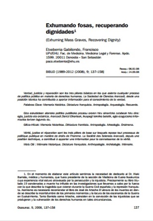 Palabras clave: Memoria histórica. Dictadura franquista. Antropología. Arqueología. Recuerdo.