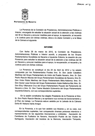 El Pleno del Parlamento ha aprobado hoy, con los votos a favor de SN, Bildu, Aralar-Nabai, I-E y los no adscritos, la abstención de UPN y el voto en contra del PPN, la Ley Foral de reconocimiento y reparación moral de los ciudadanos navarros asesinados y víctimas de la represión a raíz del golpe militar de 1936.
