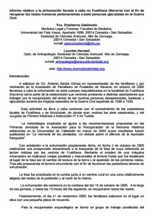 Informe relativo a la exhumación llevada a cabo en Olmedillo de Roa (Burgos) con el fin de recuperar los restos humanos pertenecientes a ocho personas ejecutadas en la Guerra Civil