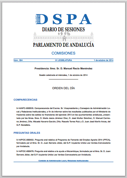 Pregunta oral relativa al papel de los colectivos memorialistas y familiares en el protocolo de exhumaciones (Diario de Sesiones del Parlamento de Andalucía, nº 304, 1-10-2014).