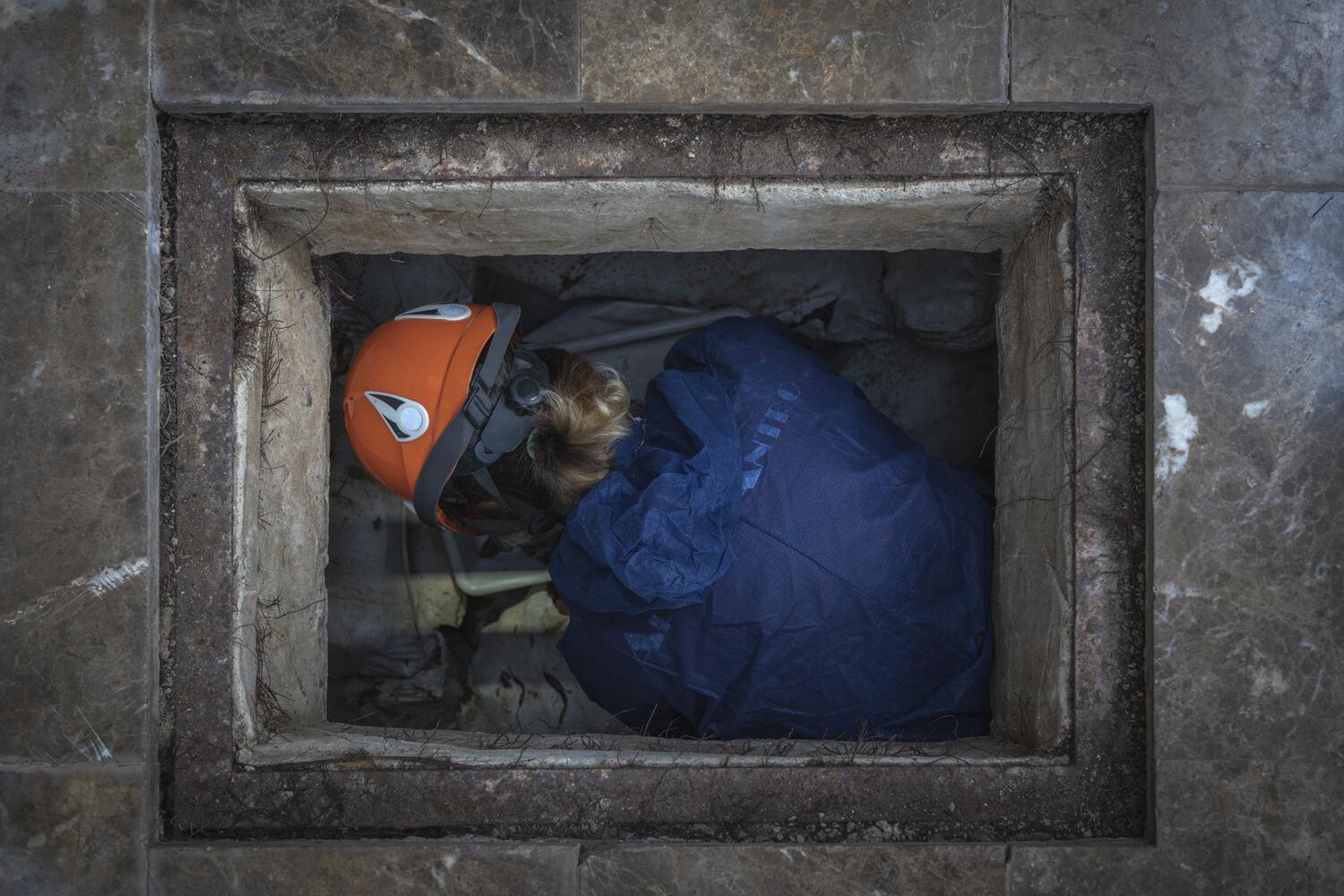 La cripta estaba llena de raíces y los sacos se encontraban resquebrajados, por lo que tuvieron que hacer ”toda una operación logística“ para que no se deshicieran. El espacio no daba pie a los arqueólogos a maniobrar ni moverse cómodamente, de hecho, tuvieron que bajar a la cripta con casco y linterna. En posición de cuadrupedia, con esfuerzo y prácticamente a tientas, extrajeron todas las bolsas.