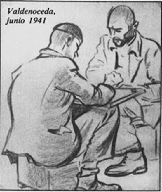 Valdenoceda es una pequeña localidad del norte de Burgos, cercana a la provincia de Álava en la que se encontraba, antes del inicio de la Guerra Civil, una importante fábrica de sedas. Allí se instaló el Penal de Valdenoceda, una de las cárceles más terribles del franquismo. En ella estuvo el pintor, caricaturista y dibujante madrileño José Robledano, colaborador habitual de la prensa de la época, a la que pertenece mucha de las ilustraciones del artículo.